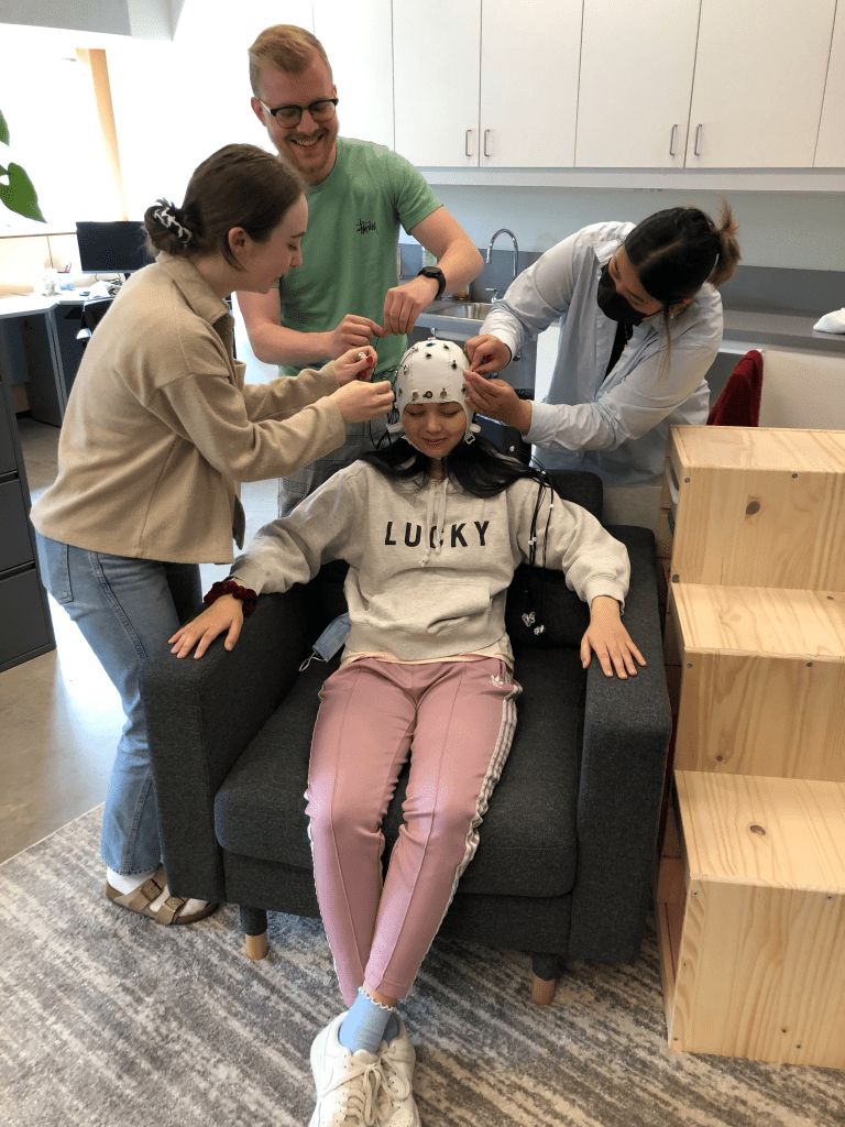 To answer questions like these, we run experiments with babies, children and adults, and use a variety of methods to measure learning, such as eye-tracking and EEG. Please use the menu tabs above to find out more about our recent and current studies, methods, published work, and how to get involved!
